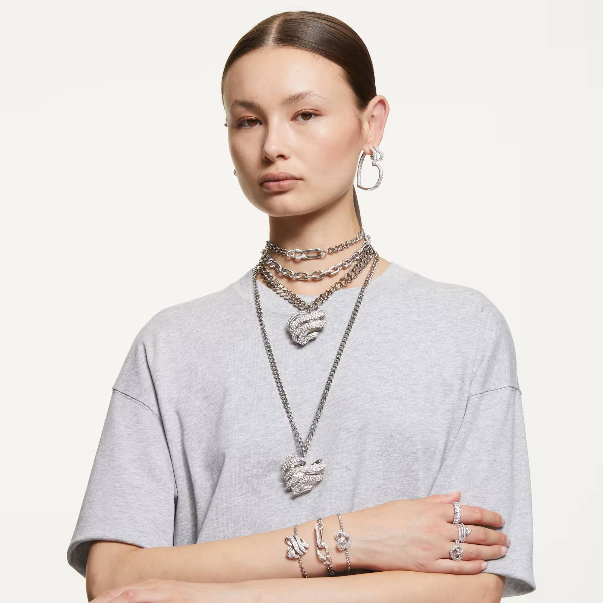 - Mit funkelnden, klaren Swarovski Kristallen und einem herzförmigen Design, das das Licht aus jedem Winkel perfekt reflektiert.
