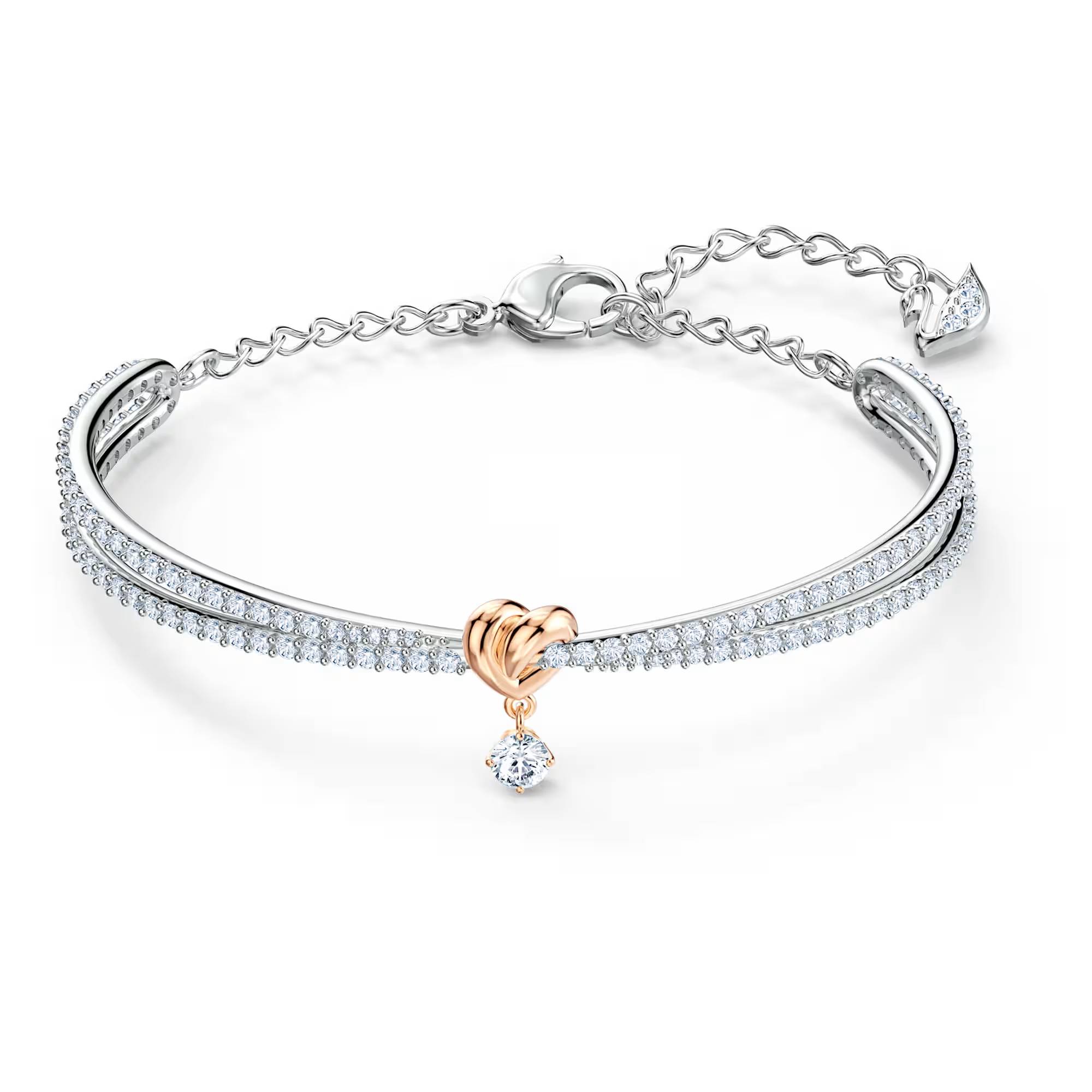 - Elegantes Design: Der Swarovski Lifelong Heart Armreif vereint funkelnde Steine mit einem geschwungenen herzförmigen Detail in roségoldfarbenem Finish und sorgt für einen glamourösen Look.