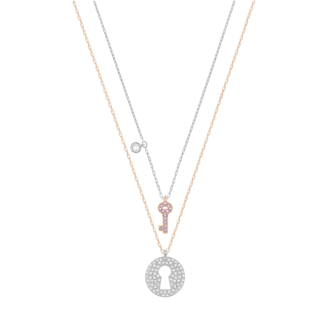Swarovski Halsketten Set Damen Crystal Wishes Key rosa, Metallmix 5370852