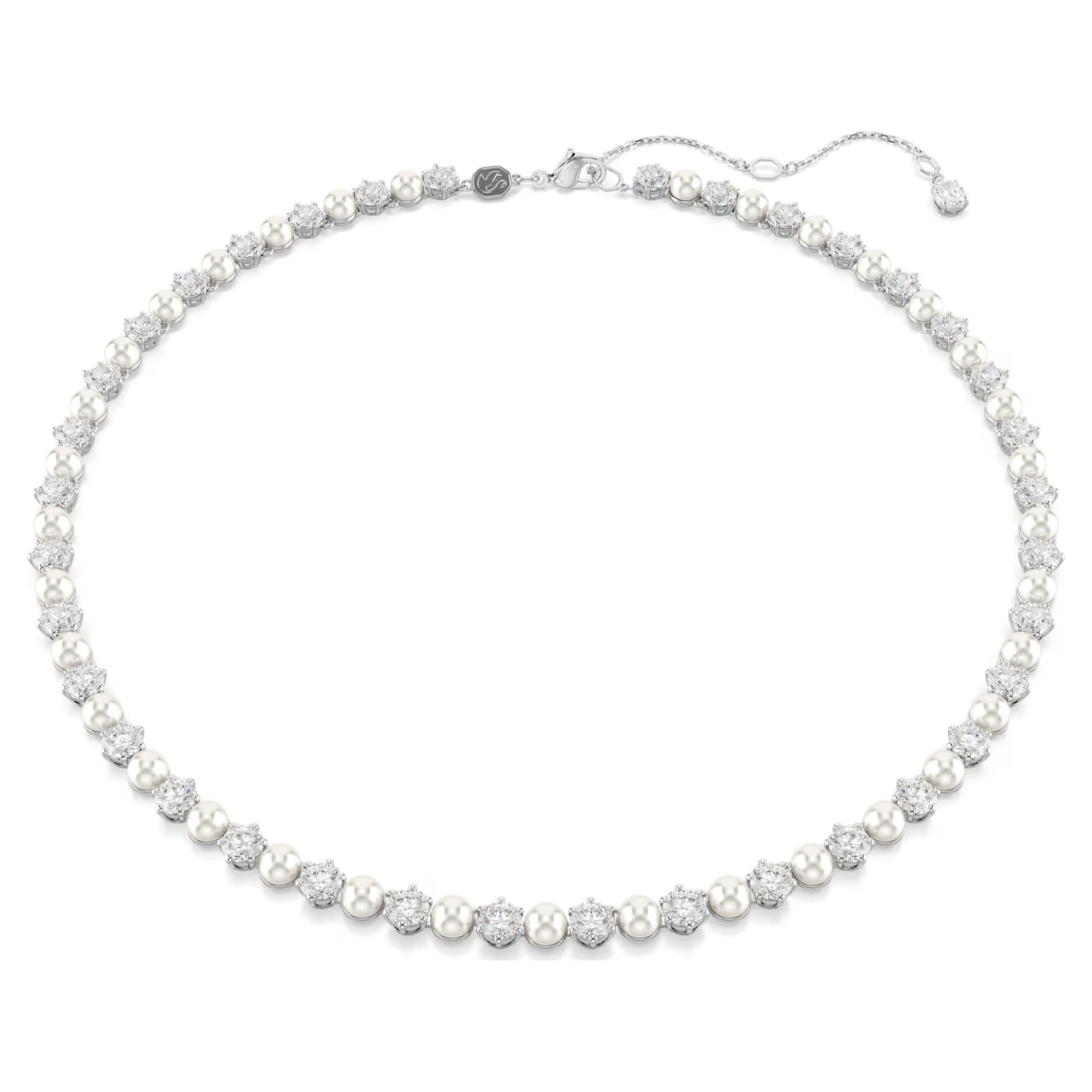Swarovski Kette Unisex Matrix Tennis Halskette Crystal Pearl Round Cut Weiß Rhodiniert 5689623