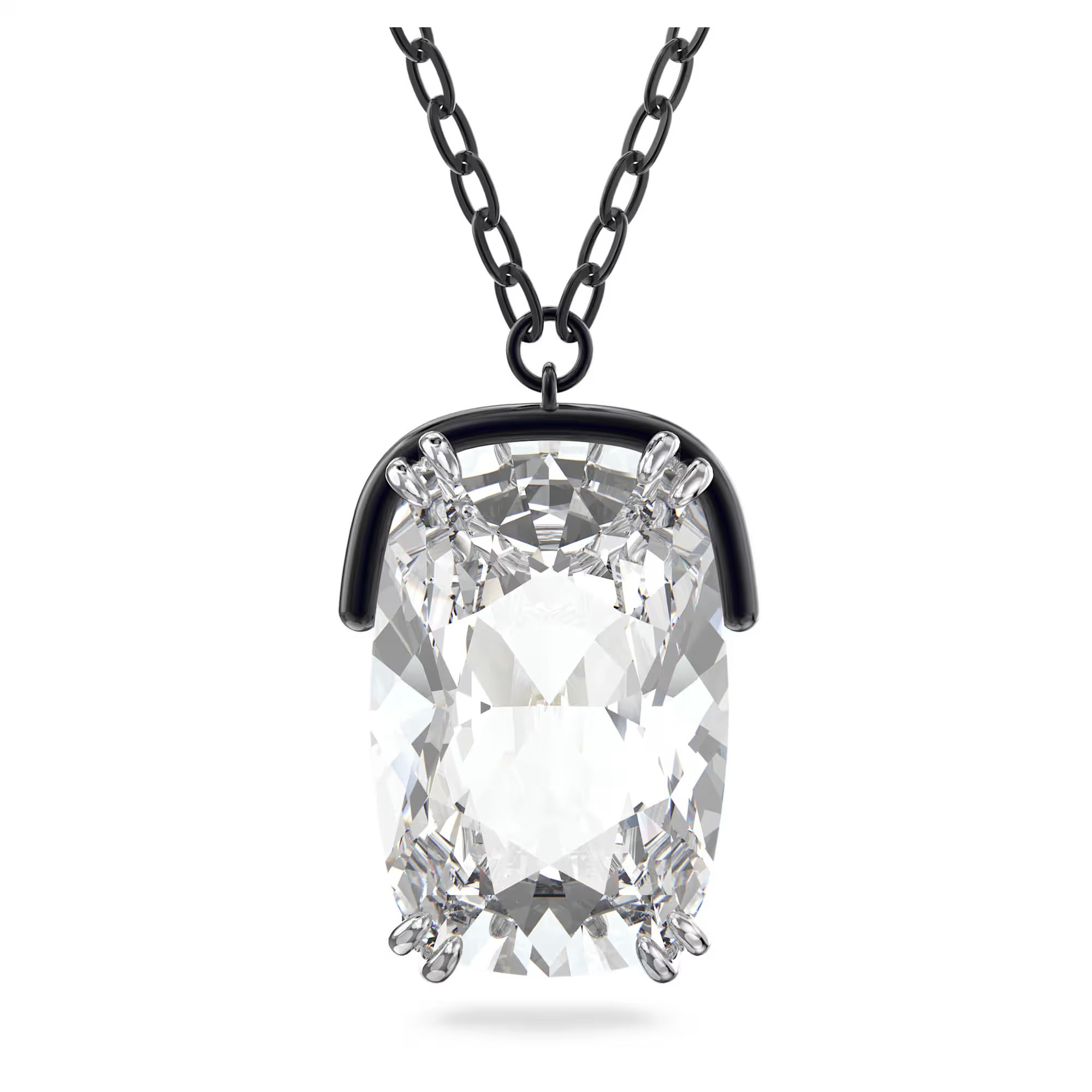 - Verleihen Sie Ihrem Outfit einen Hauch von Glamour mit dieser atemberaubenden Halskette von Swarovski, die einen übergroßen Kristallanhänger in einem eleganten Elongated-Cushion-Schliff präsentiert.