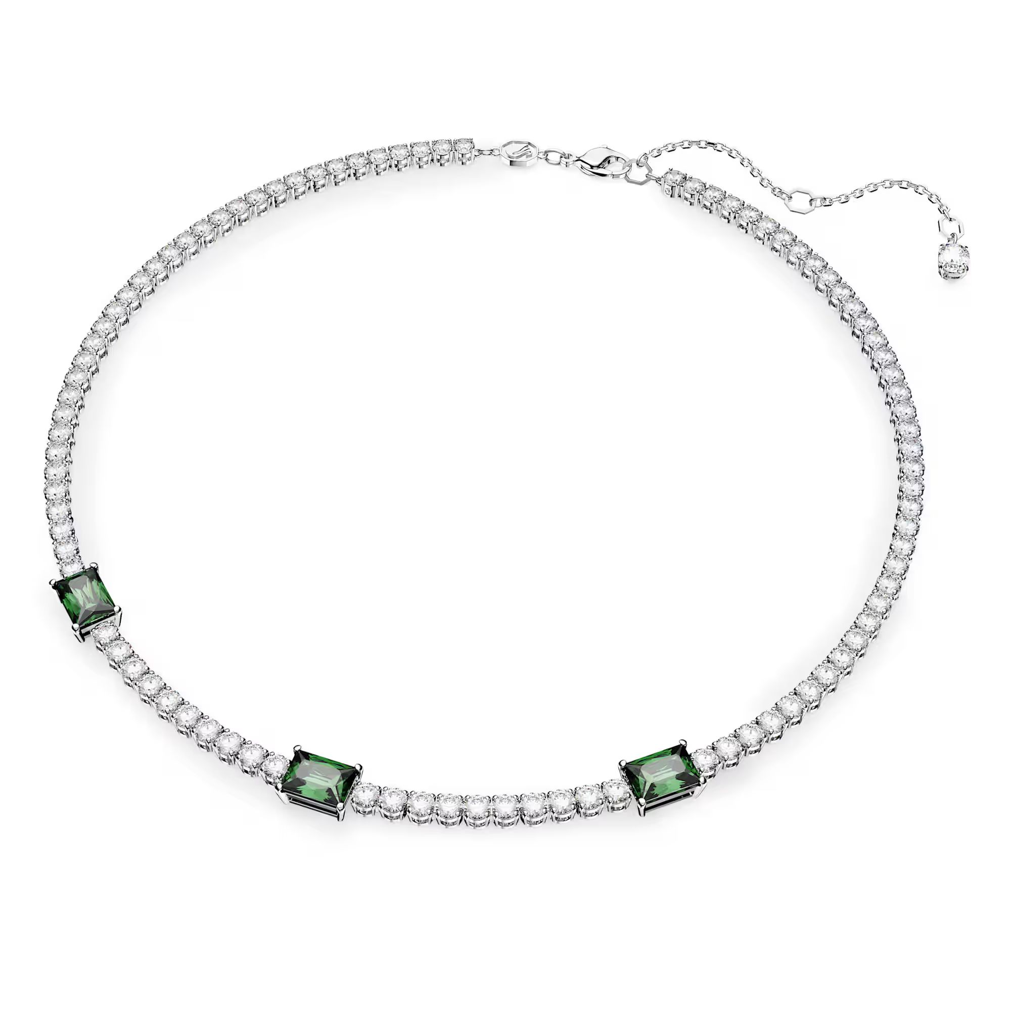 - Tennis-Collier – fein gearbeitete Kristallreihe mit grünem Farbakzent