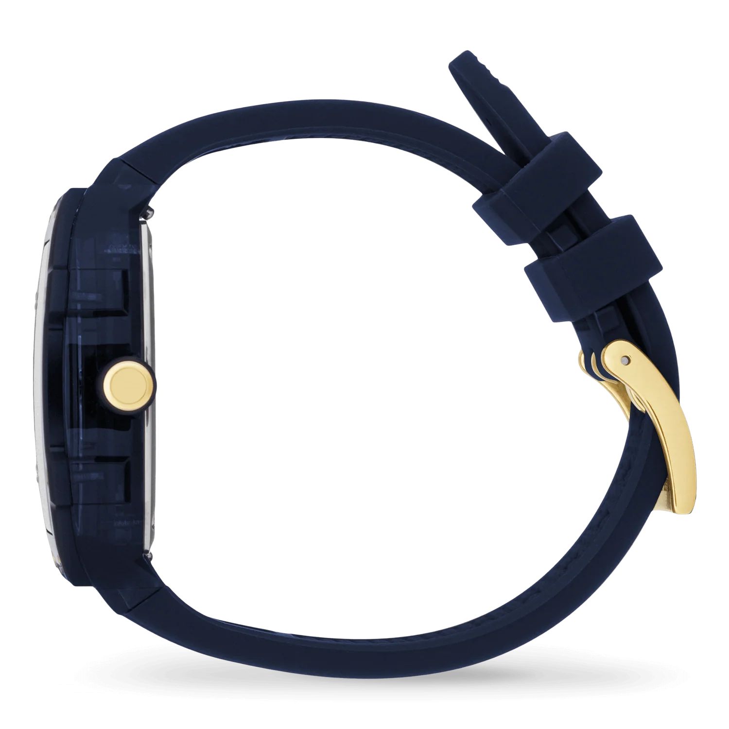- Farbe Gehäuse / Armband: Dunkelblau mit goldfarbenen Details