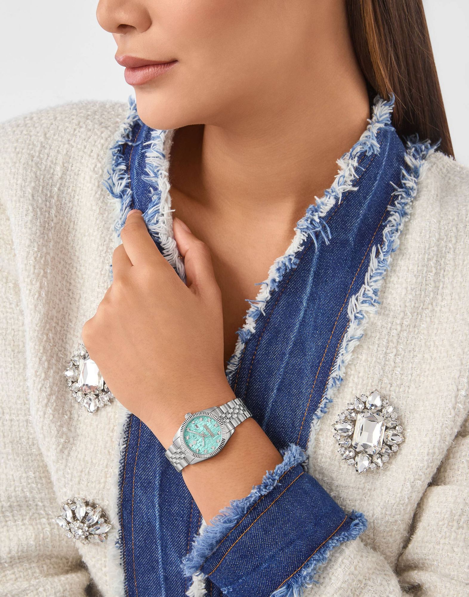 DATE SUPERLATIVE 28MM - Silberfarbenes Gehäuse - Türkisfarbenes Zifferblatt - Silberfarbenes Armband