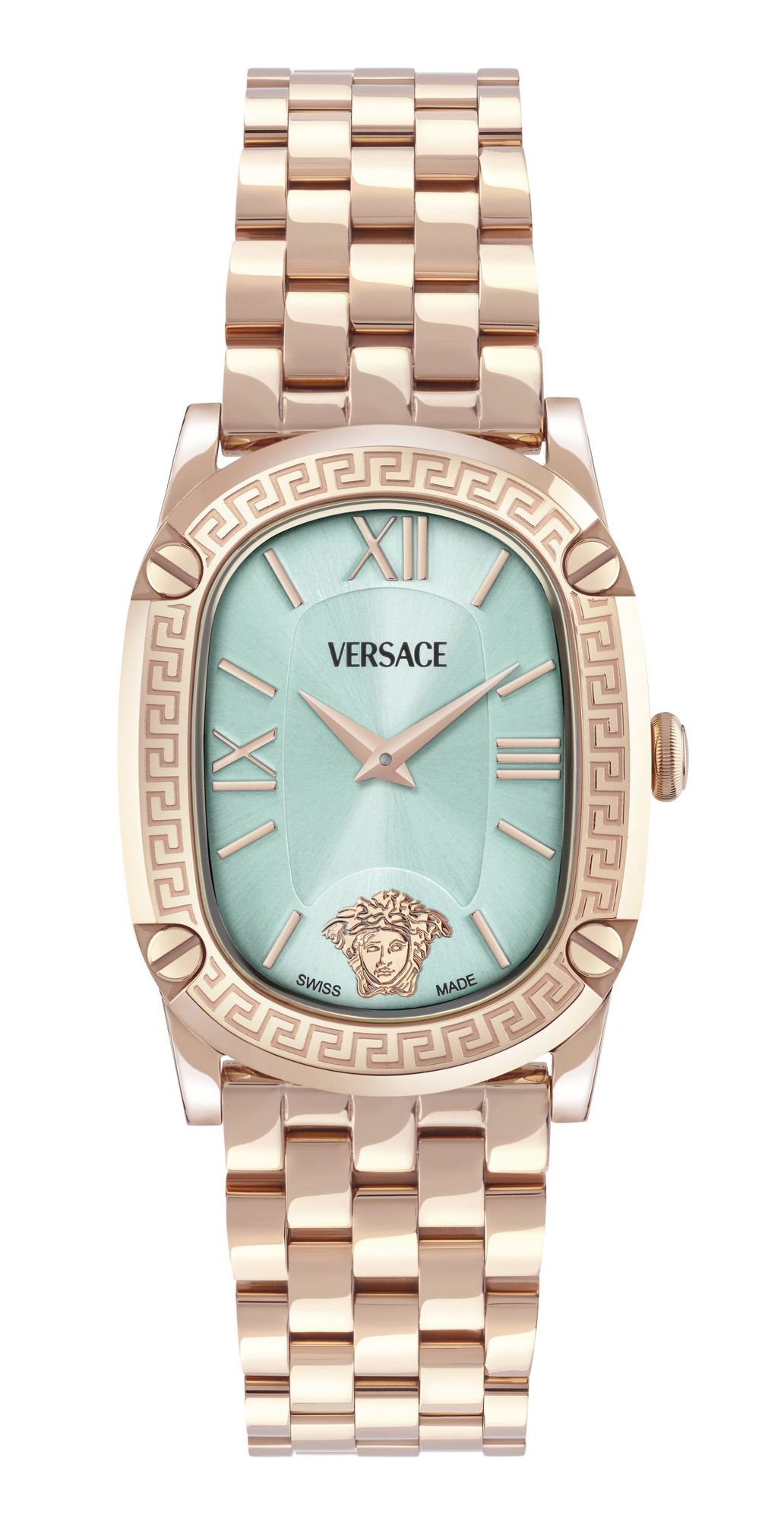 - Luxuriöse Damen‑Armbanduhr von Versace, die ikonische Greca Couture‑Designsprache mit edlem Edelstahl verbindet.