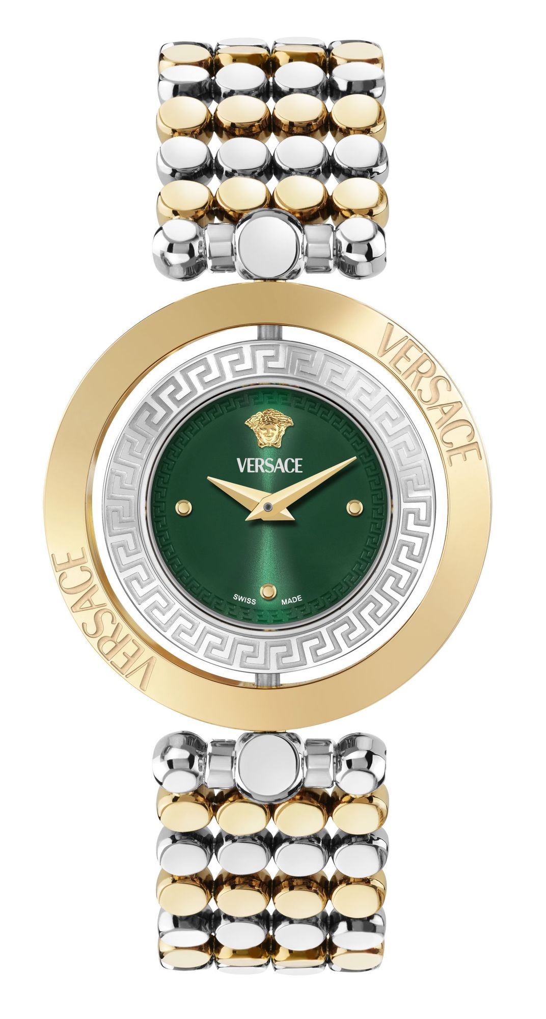 - Luxuriöse Damen‑Armbanduhr im charakteristischen Versace‑Design – ideal für stilbewusste Trägerinnen.