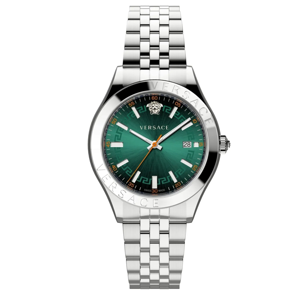 Versace Herren Armbanduhr Hellenyium Silber/Grün VEVK01021