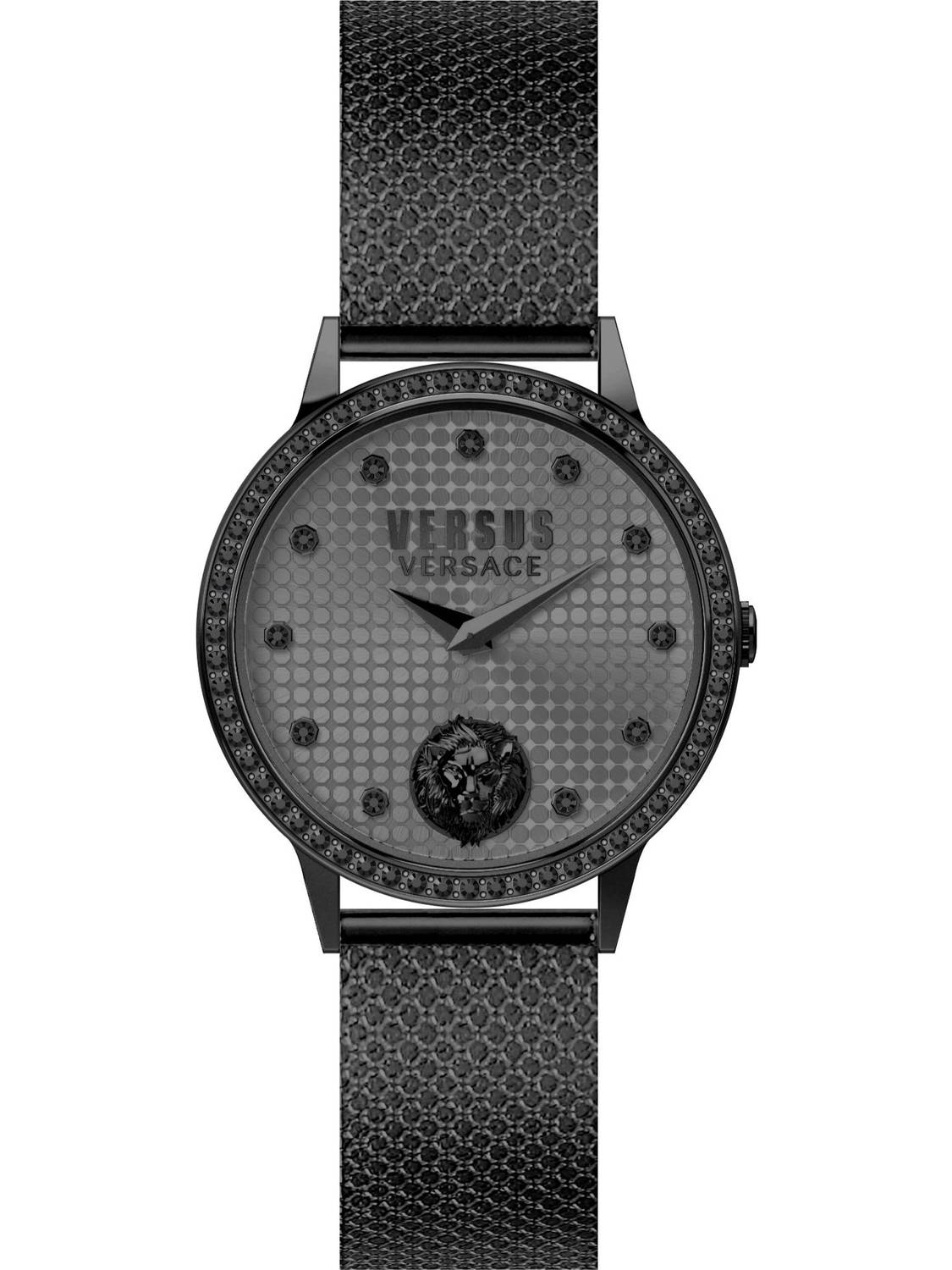 Die Versus Strandbank Crystal ist ein sehr beliebtes Modelle aus der Versus Versace Uhren Kollektion. Diese schöne und attraktive Damenuhr ist auf dem Zifferblatt und der Lünette mit Strasssteinen verziert. Die geradlinige Gehäuseform passt perfekt zu dem zweistufigen Zifferblatt mit einem raffinierten Guilloch Muster. Die Markenidentität wird durch den 3D-Löwenkopf bei 6 Uhr hervorgehoben. Die Gehäusebreite ist 34mm. Ein kratzfestes entspiegeltes Mineralglas schützt Ihre neue Traumuhr weitgehend vor unbeabsichtigten Kratzern und Blessuren.