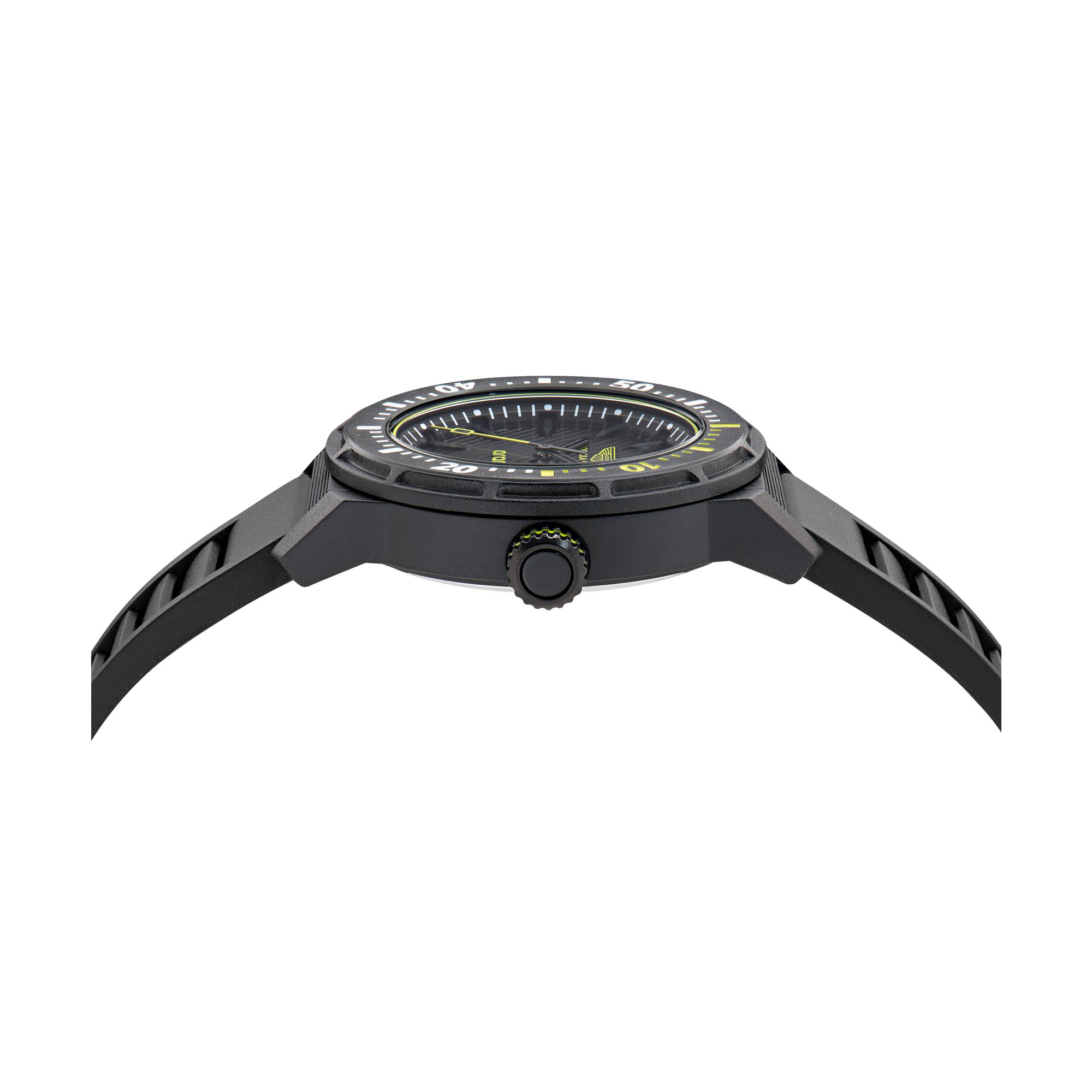 - Kompaktes 40 mm‑Gehäuse mit schwarzem Resin‑Material – ideal für Herren, die einen markanten, aber nicht übergroßen Auftritt am Handgelenk suchen.