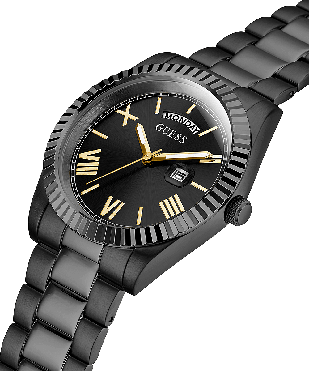 - Das Zifferblatt der Quarzuhr GW0265G4 in schwarz kommt besonders gut zur Geltung und wird von stabilem Mineralglas geschützt.