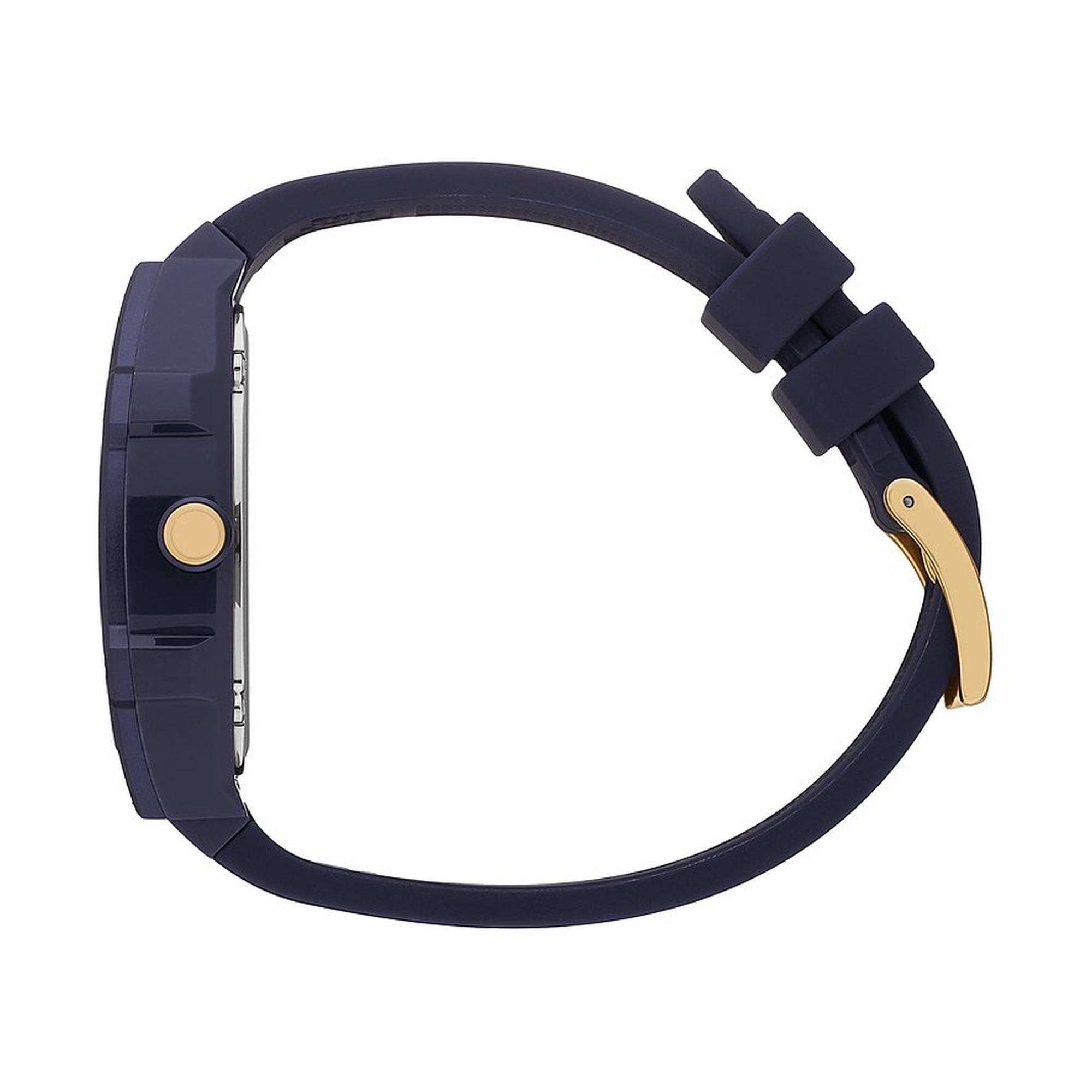 - Farbe: Blau (Gehäuse, Armband, Zifferblatt) mit goldfarbenen Details