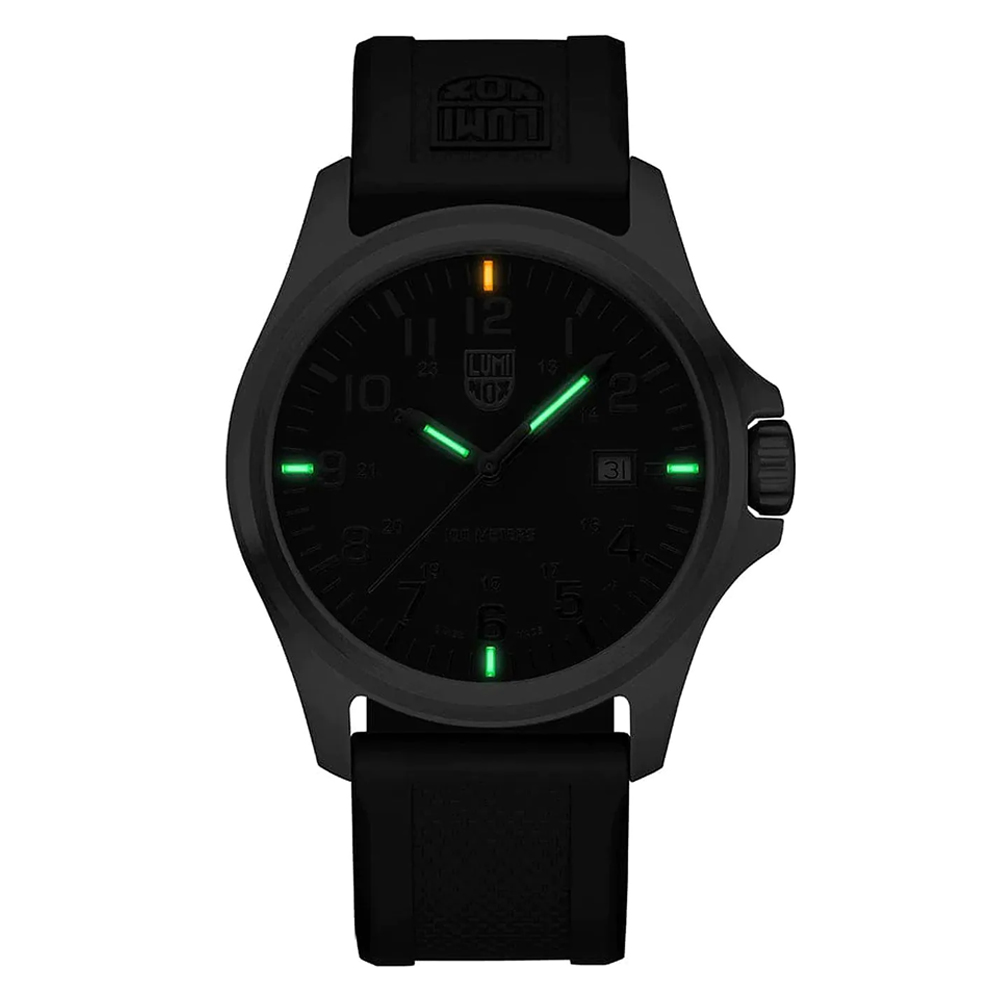 - Luminox Light Technology: Selbstleuchtend („Always Visible“) für bis zu 25 Jahre
