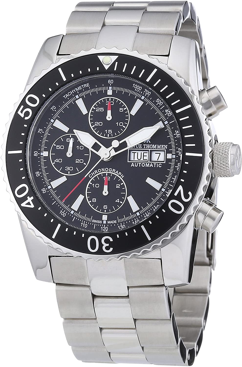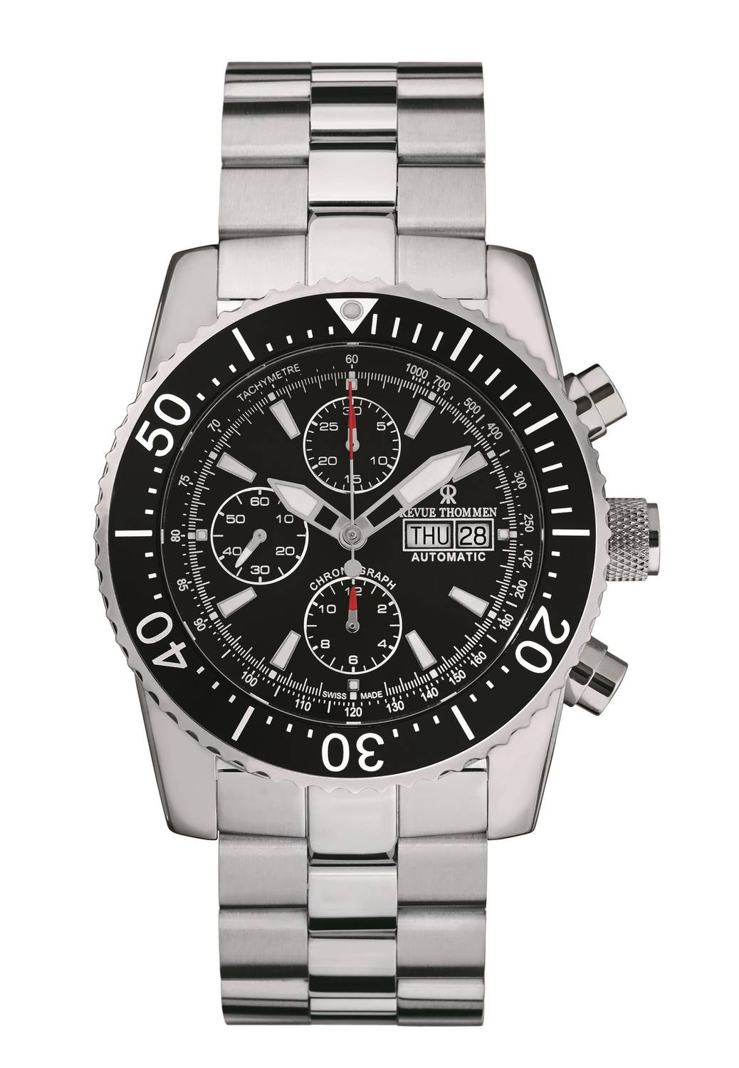 Revue Thommen Armbanduhr Automatik Werk Valjoux 7750, Gehäuse Ø 45 mm , Edelstahl, Lünette schwarz , Saphire Crystal, Datum