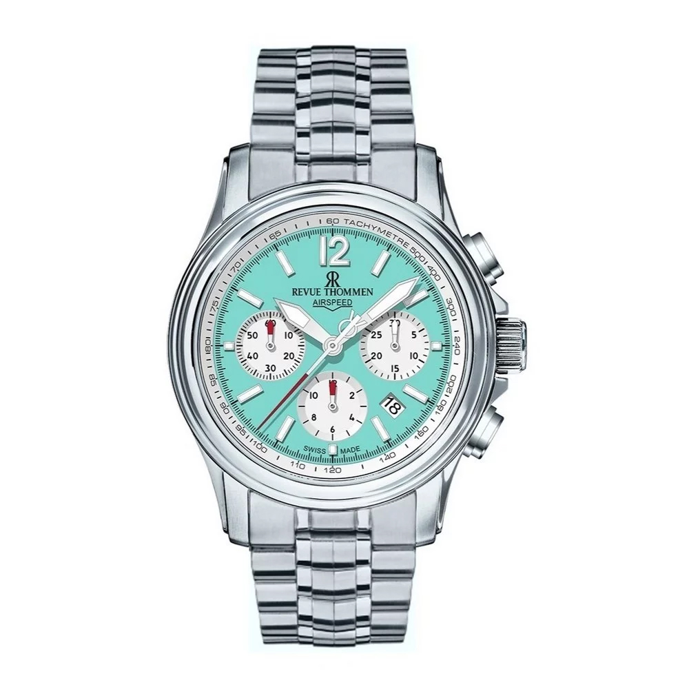 Revue Thommen Herren Automatikuhr Airspeed 16041.6431 Silberfarben, Türkis