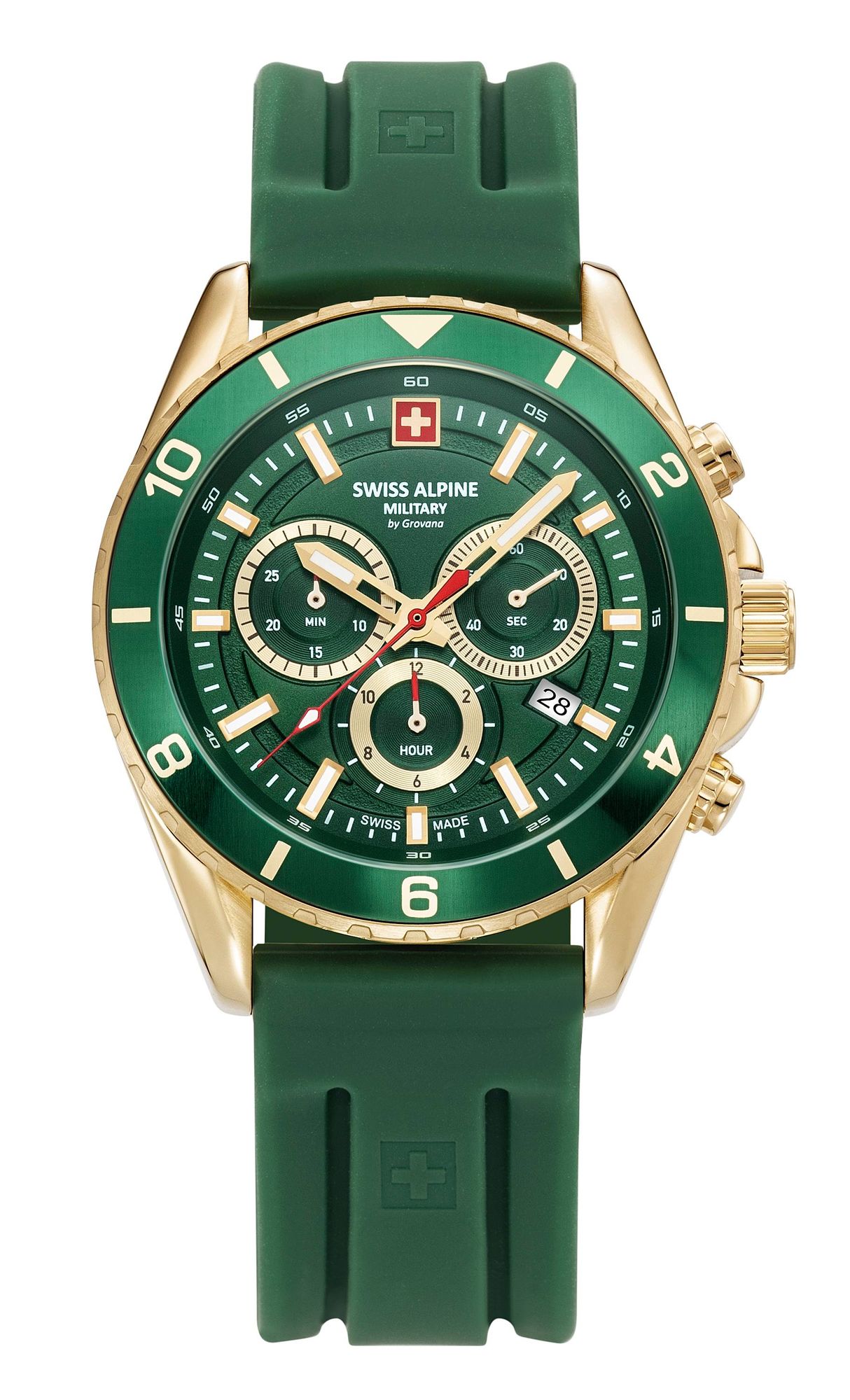 Swiss Alpine Military Herrenuhr 7034.9814 Sierra, Chronograph, Edelstahl, Grün-Gold, Artikelnummer 7034.9814